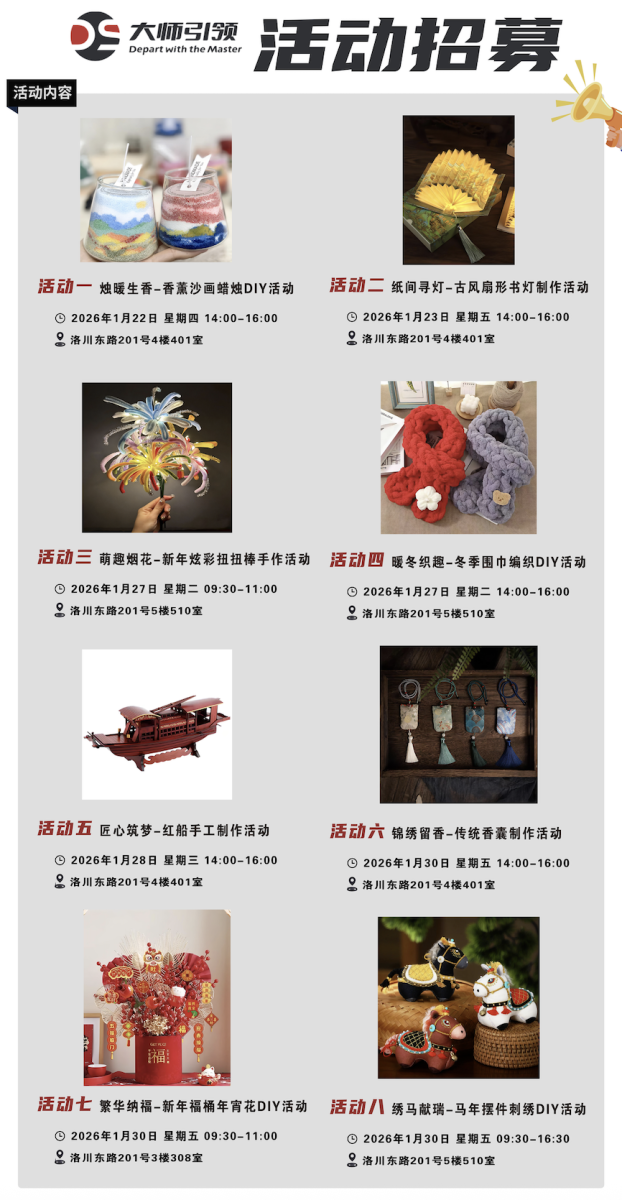 每场活动限报10人。每人每月限报1场,且每人每年参加大师引领活动次数不得超过3场次。欢迎符合条件的具有本市户籍就业年龄段的残疾人报名参加,共同探索精彩的职业体验之旅!